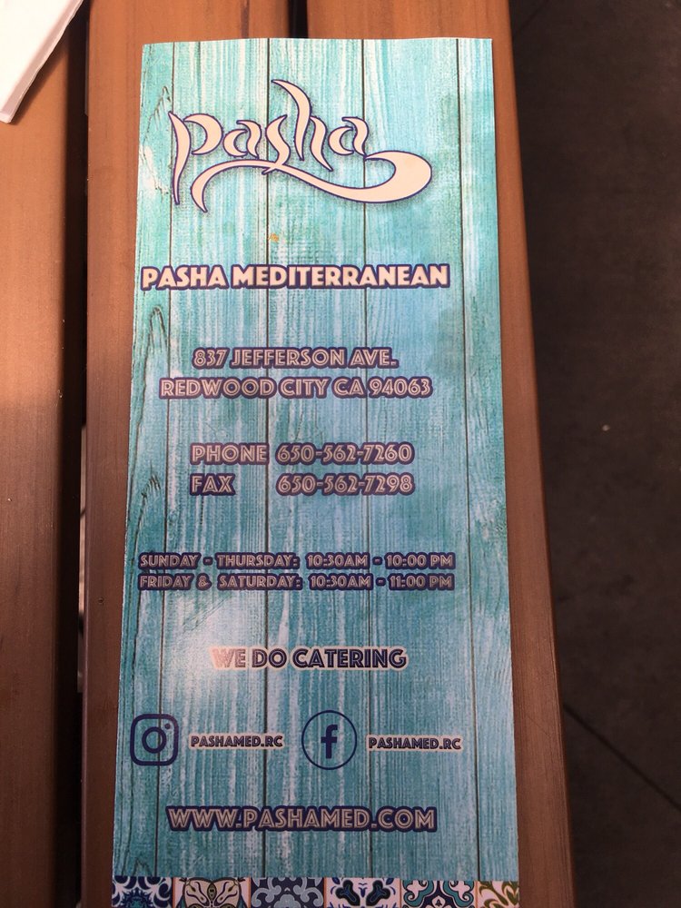 Introducing Pasha Mediterranean & Hookah Lounge, where Mediterranean cuisine meets a trendy, casual ambiance. Located in Redwood City, CA, Pasha offers a diverse menu with options for all, including vegan and vegetarian choices. Enjoy classic dishes like Hummus, Baba Ghanoush, and Tzatziki, or opt for hearty salads like Pasha Salad or Greek Salad. The reviews rave about the quality of the food, with customers praising the flavors, freshness, and generous portions. The outdoor patio is a hit, perfect for enjoying a flavorful hookah session and sipping on strong drinks. With excellent service, a vibrant atmosphere, and delicious food, Pasha Mediterranean & Hookah Lounge is a must-visit spot for a memorable dining experience.